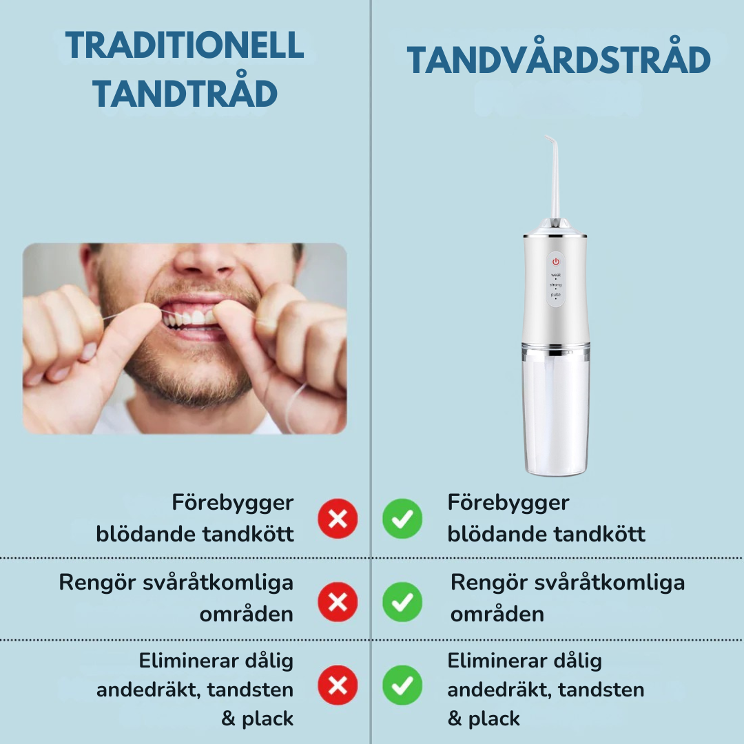 Har du känsligt tandkött eller blöder lätt? Då är en vattenfloss ett skonsamt tillskott i din rutin. Den masserar tandköttet försiktigt och hjälper till att förbättra blodcirkulationen.