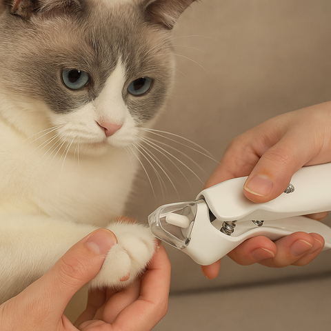 Ja, Trimzy är utvecklad för att vara skonsam och säker för både hundar och katter. Den tystgående motorn och LED-lamporna gör det lätt att se klon och undvika skador.